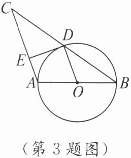 3. 如图,$AB是\odot O$的直径,$BC交\odot O于点D$,$DE\perp AC于点E$,要使$DE是\odot O$的切线,还需补充一个条件,则补充的条件不正确的是(