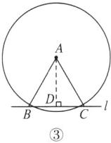 (3)当⊙A和直线l有两个公共点时,r>AD,即r>3(如图③).