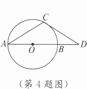 4. 如图,$AB是\odot O$的直径,$C是\odot O$上的点,过点$C作\odot O的切线交AB的延长线于点D$. 若$\angle A = 32^{\circ}$,则$\angle D = $