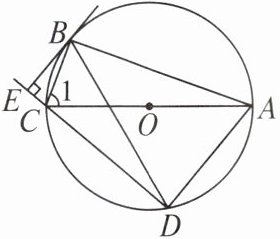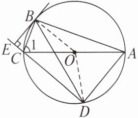 【例1】如图,$\odot O是\triangle ABC$的外接圆,$AC$为直径,弦$BD = BA$,$BE\perp DC交DC的延长线于点E$.