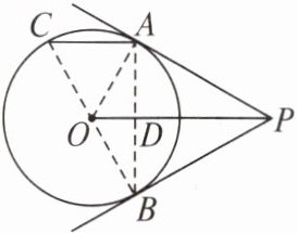 证明如图,连接$AB$,$OA$,$OB$,$BC$. 因为$PA$,$PB分别与\odot O相切于点A$,$B$,
