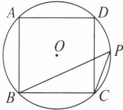 2. 如图,正方形$ABCD是\odot O$的内接正方形,点$P为劣弧\overset{\frown}{CD}上不同于点C$的任意一点,则$\angle BPC$的度数为(