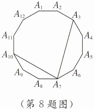 8. 如图,正十二边形$A_{1}A_{2}… A_{12}$,连接$A_{3}A_{7}$,$A_{7}A_{10}$,则$\angle A_{3}A_{7}A_{10} = $