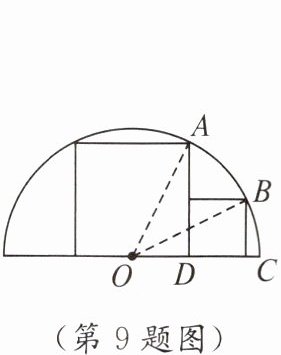 9. 如图,两个正方形彼此相邻且内接于半圆,若小正方形的面积为$16$ $cm^{2}$,则该半圆的半径为