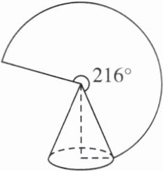 $\mathrm{cm}^2$;侧面展开扇形的圆心角是216°