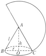 解:如图,设圆锥的轴截面为△ABC,过点A作AO⊥BC 于点O,设母线长AB = l,底面⊙O的半径为r,高AO = h.