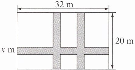 3. 如图,某小区计划在一块长为 $ 32 \, m $,宽为 $ 20 \, m $ 的矩形空地上修建三条同样宽的道路,剩余的空地上种植草坪,使草坪的面积为 $ 570 \, m^2 $。若设道路的宽为 $ x \, m $,则下面所列方程正确的是(