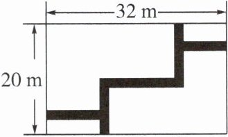 7. 如图,在宽为 $ 20 \, m $,长为 $ 32 \, m $ 的矩形地面上修建同样宽的道路(图中阴影部分),余下的部分种上草坪,要使草坪的面积为 $ 540 \, m^2 $,求道路的宽。(参考数据:$ 32^2 = 1024 $,$ 52^2 = 2704 $,$ 48^2 = 2304 $)