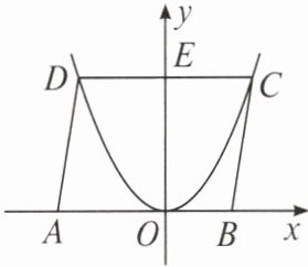 8. 如图,已知函数 $ y = ax^2 (a \neq 0) $ 的图象上的点 $ D $,$ C $ 与 $ x $ 轴上的点 $ A(-5,0) $ 和点 $ B(3,0) $ 构成平行四边形 $ ABCD $,$ DC $ 与 $ y $ 轴的交点为 $ E(0,6) $,试求 $ a $ 的值。
