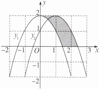 ★15. 如图,抛物线 $ y_1 = -x^2 + 2 $ 向右平移 $ 1 $ 个单位长度得到抛物线 $ y_2 $。回答下列问题: