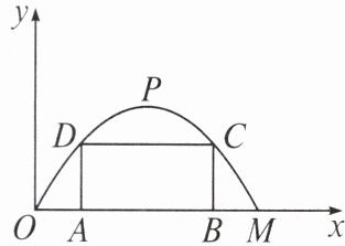 (3)若要搭建一个矩形“支撑架”$ AD - DC - CB $,使点 $ C $,$ D $ 在抛物线上,点 $ A $,$ B $ 在地面 $ OM $ 上,则这个“支撑架”总长的最大值是多少米?