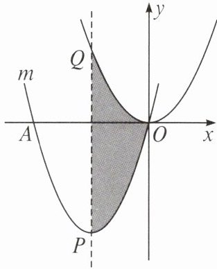 12. 如图,把抛物线 $ y = \frac{1}{2}x^2 $ 平移得到抛物线 $ m $,抛物线 $ m $ 经过点 $ A(-6, 0) $ 和原点 $ O(0, 0) $,它的顶点为 $ P $,它的对称轴与抛物线 $ y = \frac{1}{2}x^2 $ 交于点 $ Q $,则图中阴影部分的面积为