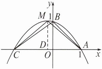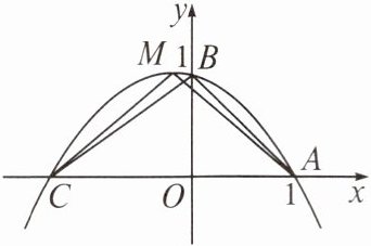 【例 1】二次函数 $ y = ax^2 + bx + c $ 的图象的一部分如右图所示,已知它的顶点 $ M $ 在第二象限,且经过点 $ A(1,0) $ 和点 $ B(0,1) $。
