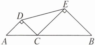 12. 如图,线段 $ AB $ 的长为 $ 2 $,$ C $ 为 $ AB $ 上一个动点,分别以 $ AC $,$ BC $ 为斜边在 $ AB $ 的同侧作两个等腰直角三角形($ \triangle ACD $ 和 $ \triangle BCE $),那么 $ DE $ 长的最小值是______.