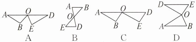 2. 如图,将△AOB绕点O旋转180°得到△DOE,则下列作图正确的是(