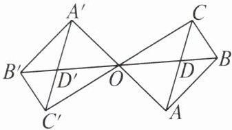 解 有8对形状和大小相同的三角形,它们是△ABC与△A′B′C′,△OAD与△OA′D′,△OAB与△OA′B′,△ABD与△A′B′D′,△ODC与△OD′C′,△OBC与△OB′C′,△OAC与△OA′C′,△BCD与△B′C′D′。