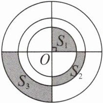解 将 $ S_1 $ 旋转 $ 180° $,$ S_2 $ 顺时针旋转 $ 90° $,则 $ S_1 $,$ S_2 $,$ S_3 $ 拼成一个扇形,该扇形占整个大圆的 $ \dfrac{1}{4} $,