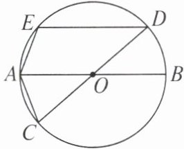 9. 如图,AB,CD是⊙O的直径,若弦$DE// AB$,则弦AC与AE的大小关系为