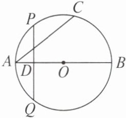 7. 如图,AB是⊙O的直径,AC是弦,过$\overset{\frown}{AC}$的中点P作弦$PQ\perp AB$,交AB于点D,求证:$PQ = AC$.