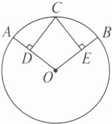 10. 如图,在⊙O中,$\overset{\frown}{AC}= \overset{\frown}{CB}$,$CD\perp OA$于点D,$CE\perp OB$于点E,求证:$AD = BE$.