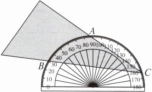 3. 将量角器按如图所示的方式放置在三角形纸板上,使点$C$在半圆上,点$A$,$B的读数分别为86^{\circ}$,$30^{\circ}$,则$\angle ACB$的度数为(
