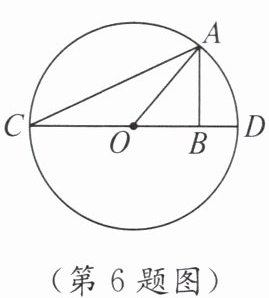 6. 如图,$CD是\odot O$的直径,若$AB \perp CD$,垂足为点$B$,$\angle OAB = 40^{\circ}$,则$\angle C$等于