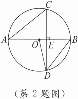 2. 如图,线段$AB是\odot O$的直径,弦$CD \perp AB$,垂足为点$E$,$\angle CAB = 40^{\circ}$,则$\angle ABD与\angle AOD$分别等于(