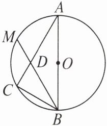 【例】如图,$AB是\odot O$的直径,$M是劣弧\overset{\frown}{AC}$的中点,弦$AC与BM相交于点D$,$\angle ABC = 2\angle A$.