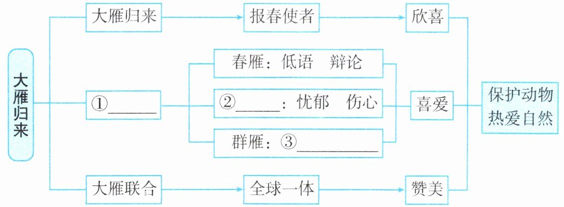读课文,整体感知课文内容,将图中空缺处补充完整。