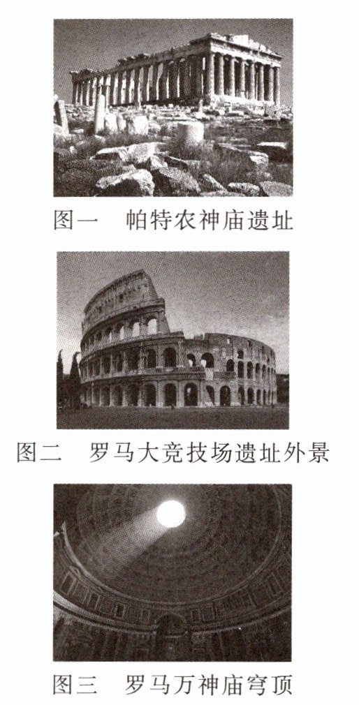 (1)图一:希腊建筑艺术的典型代表;图二:罗马的代表性建筑。