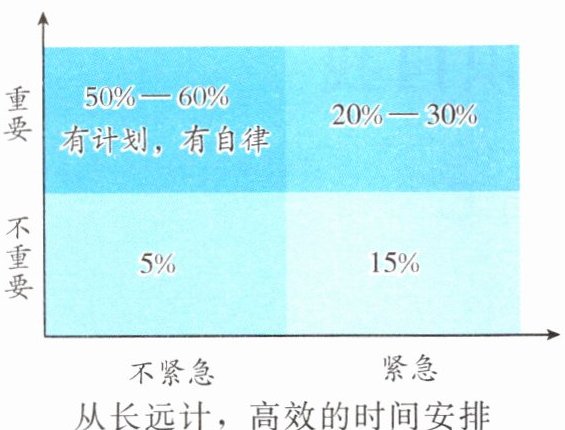 5. 制订行动方案需要明确什么时间完成什么事情,列出时间表。这就要求我们根据事情的轻重缓急,合理有效地安排和利用好时间,提高做事效率。根据下面低效和高效的时间安排图示的描述,下列说法正确的是( )