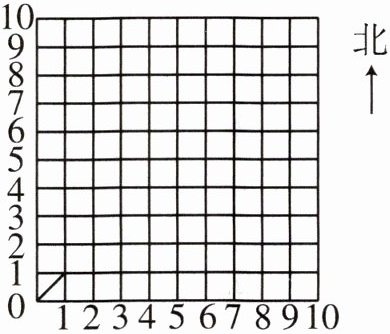 )$,点 $(8,4)$ 北偏西 $45^{\circ}$ 方向 $10m$ 处是点 $(7