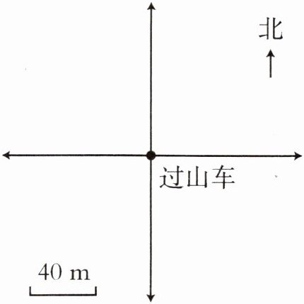 以过山车为中心,向下(南)偏右(东)$40°$方向画3段。