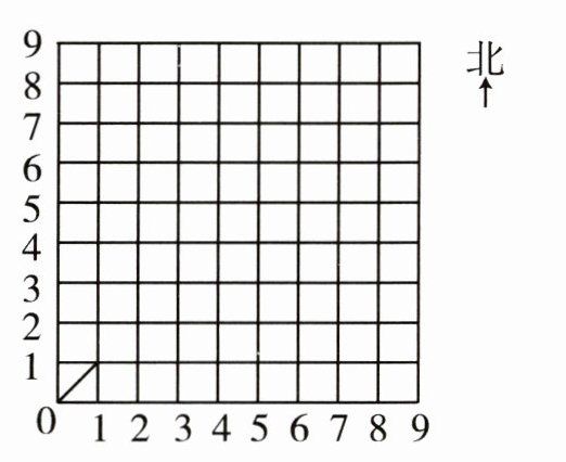 4. 如下图所示,如果一个小正方形的对角线长为20cm,那么点$(1,0)$东偏北$45^{\circ}$方向40cm处是点( , ),点( , )西偏北$45^{\circ}$方向60cm处是点$(3,7)$,点$(1,6)$南偏东$45^{\circ}$方向80cm处是点( , )。