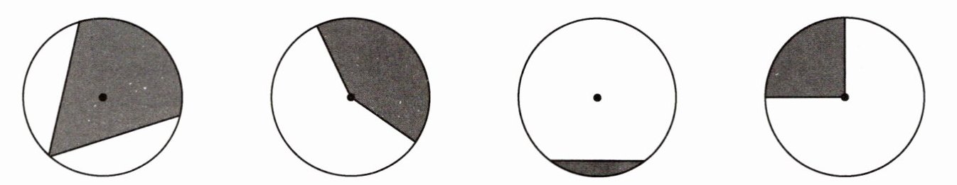 一、下面图形中,阴影部分是扇形的在( )里画“√”,不是的画“×”。