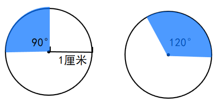 1. 请画出两个半径为1厘米的圆,在两个圆内分别画出圆心角为$90^{\circ}和120^{\circ}$的两个扇形,并涂色。