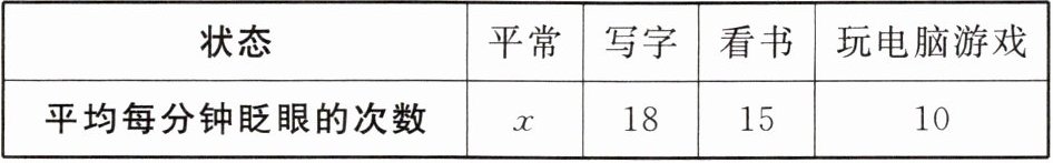 2. 人正常的眨眼可消除眼睛的疲劳,眨眼次数过少,对眼睛的健康不利,下表是人在几种状态下平均每分钟眨眼的次数。