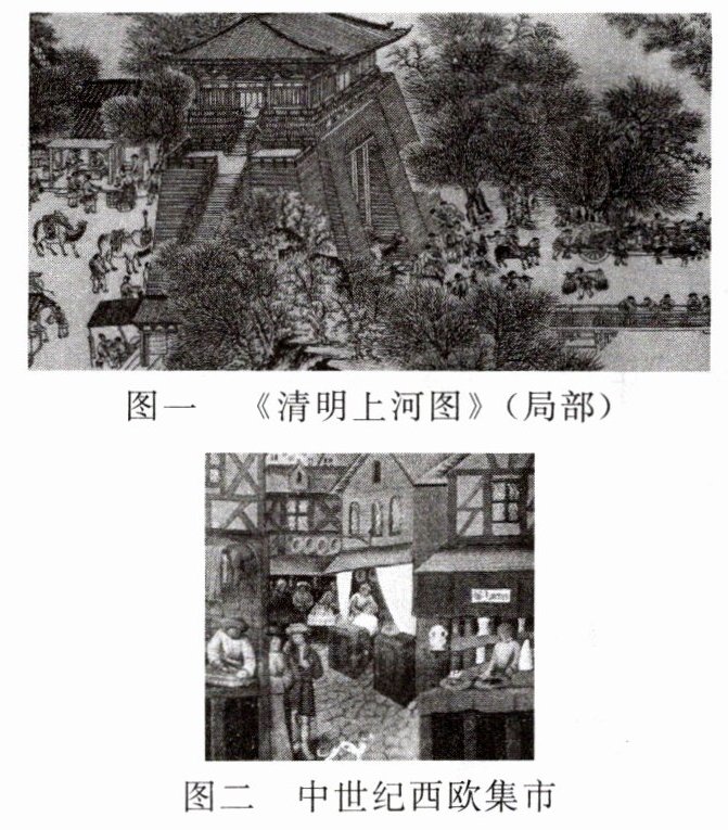 (1)图一、图二两幅中外美术作品生动地展现了人类社会哪一历史阶段城市发展的风貌?突出反映了古代城市的发展与哪些经济活动密切相关?