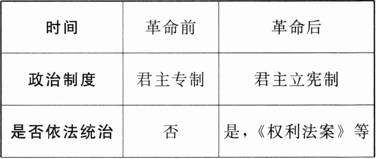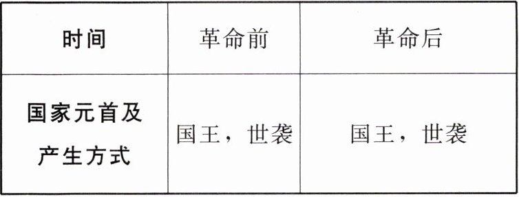 6. 下表是对17世纪某国资产阶级革命前后政治体制的比较,据此判断该国是(