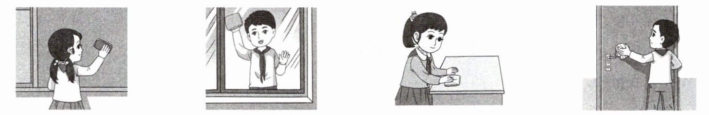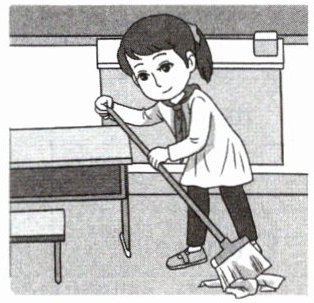 一、Listen and number. 明天下午班里要举办英语聚会。同学们主动承担了打扫教室的任务。请你听一听,用数字1-4给下列图片排序吧。