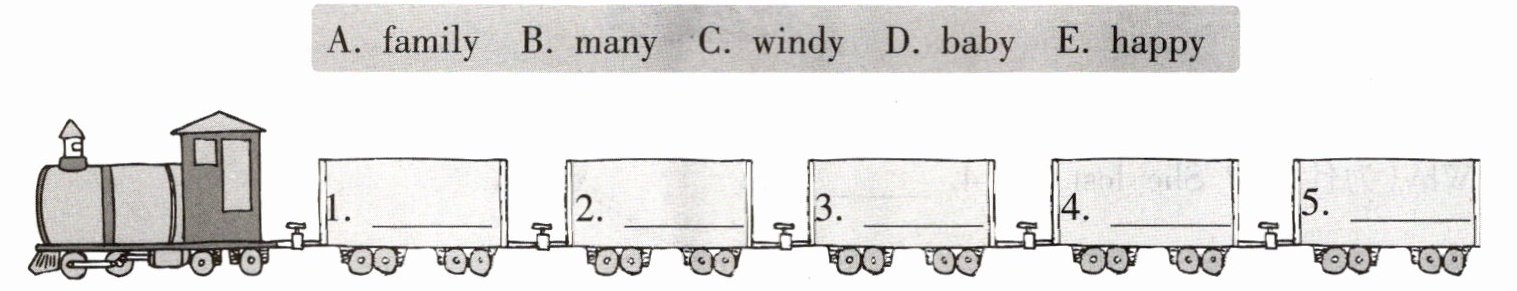 一、Listen and choose. 小火车马上要出发了。请你听一听,将下列单词安置在相应的车厢里吧。
