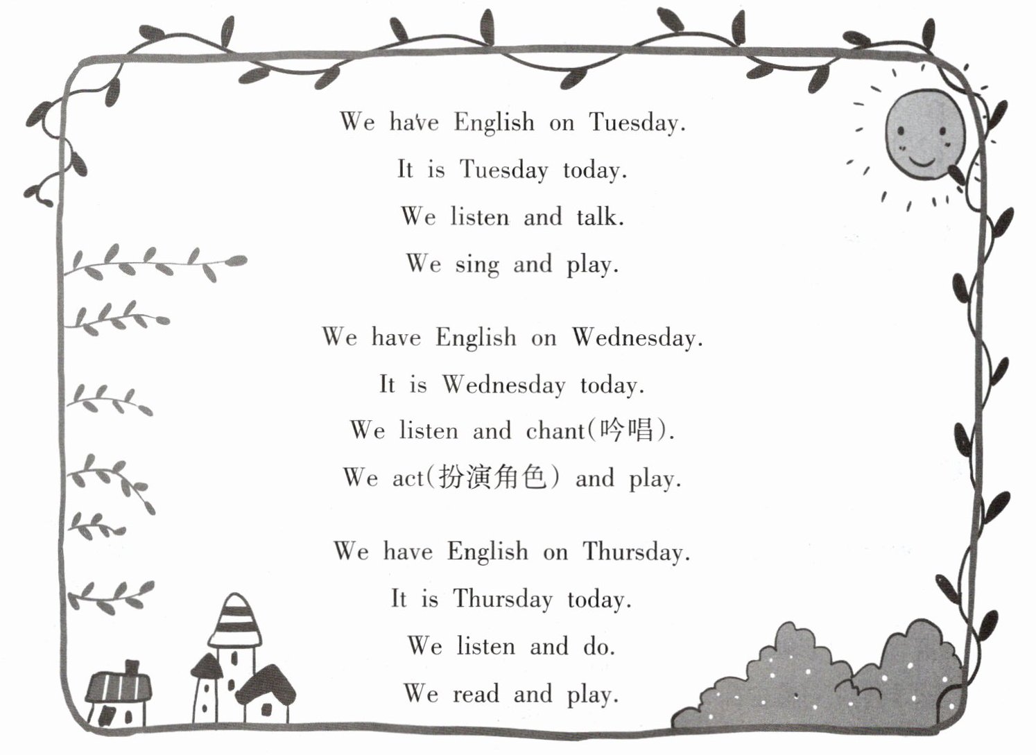 二、Read and circle. Sally在英语课上朗诵了一首英文歌谣。请你读一读,圈出以字母组合ay结尾的单词。(同一单词只圈一次)