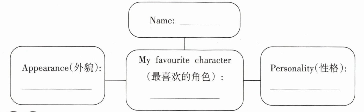 四、Fill in the mind map and say. 你喜欢戏剧《西游记》吗?你最想扮演哪个角色?请你完成下面的思维导图,并和同伴说一说吧。