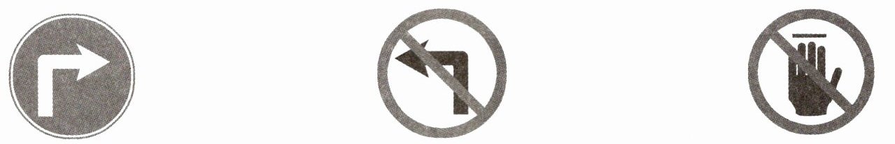 三、Look and choose. 在“我是小交警”研学活动中,同学们认识了许多交通标志。请看一看,选择相应的句子并将其序号填在横线上。