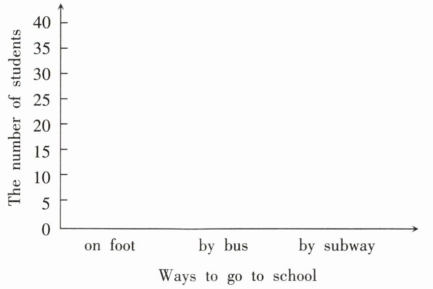 四、Read and draw. Lin Tao写了一份关于全班同学上学出行方式的调查报告。请读一读,根据调查数据完成条形统计图。