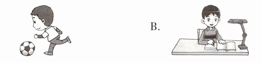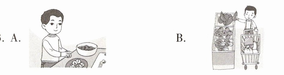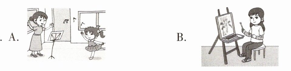 二、Listen and choose. 今天是周六,Alice和Lele来到了公园,看到几个小朋友在玩耍,他们和小朋友们聊了起来。请听一听,选择正确的图片。