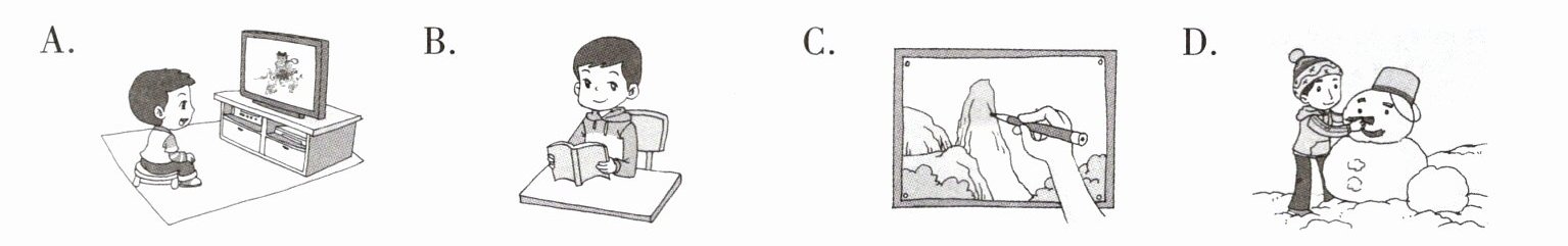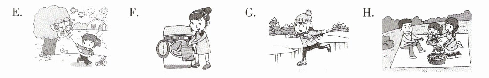 1. go ice-skating 2. wash clothes 3. draw pictures 4. make a snowman