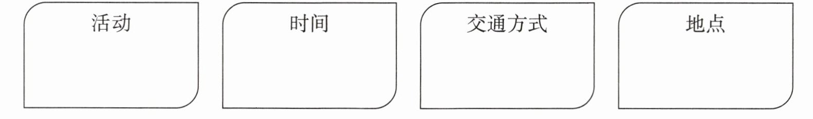 四、Read and fill. 下面是Xinxin的周日计划。你能帮她完成吗?请读一读,将相应的单词或短语写在横线上。