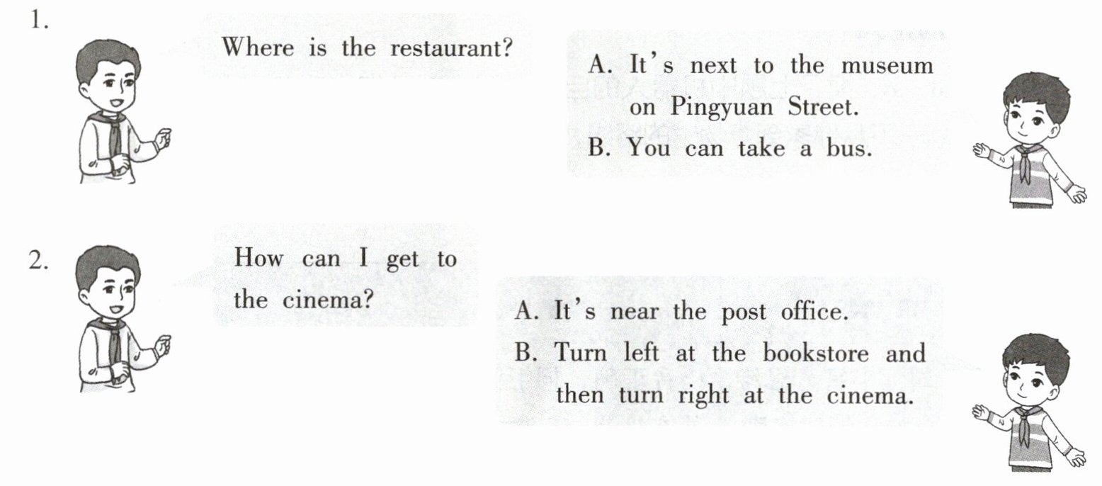 三、Read and circle. Lele和Jiejie正在玩“你问我答”的游戏,你也一起加入吧。请读一读,圈出正确答语的序号。