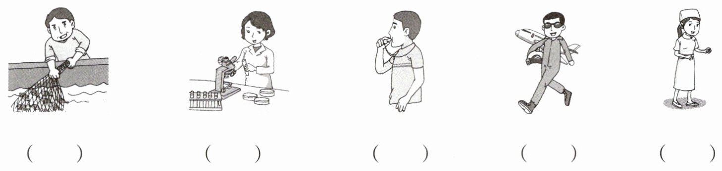 一、Listen and number. 今天英语社团的主题是“父母的职业”,Linda将同学父母的职业做了简要记录。请听一听,给下面的图片排序。